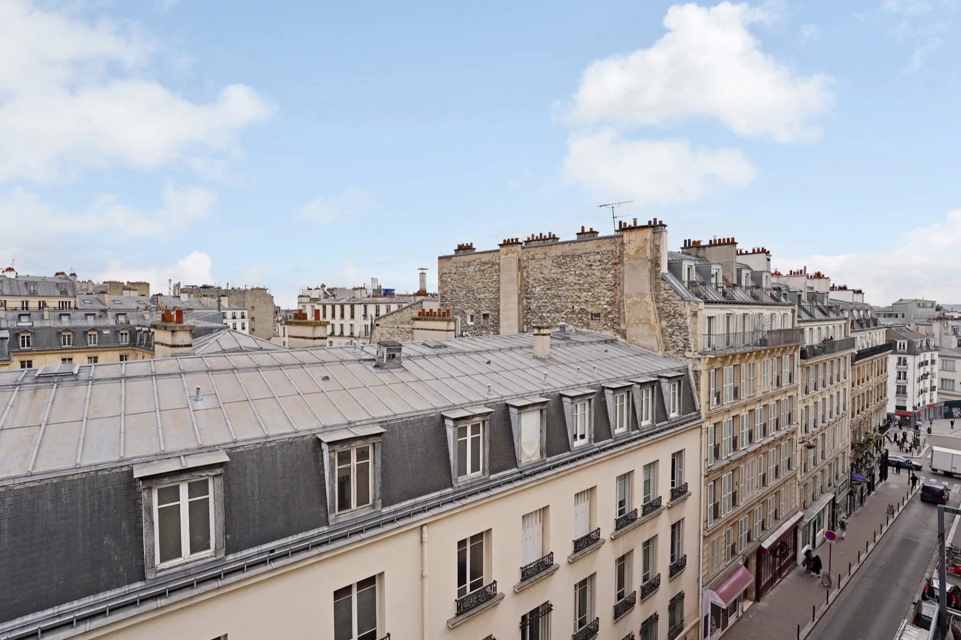 Idéalement situé dans le village des Abbesses, ce 2 pièces traversant, bien agencé et en parfait état, ne pourra que vous séduire ! Perché au 5ème étage d’un bel immeuble ravalé en pierre dont les parties communes ont été récemment refaites, il vous offre une vue dégagée et un calme absolu. Parquet, cheminée, poutres apparentes.