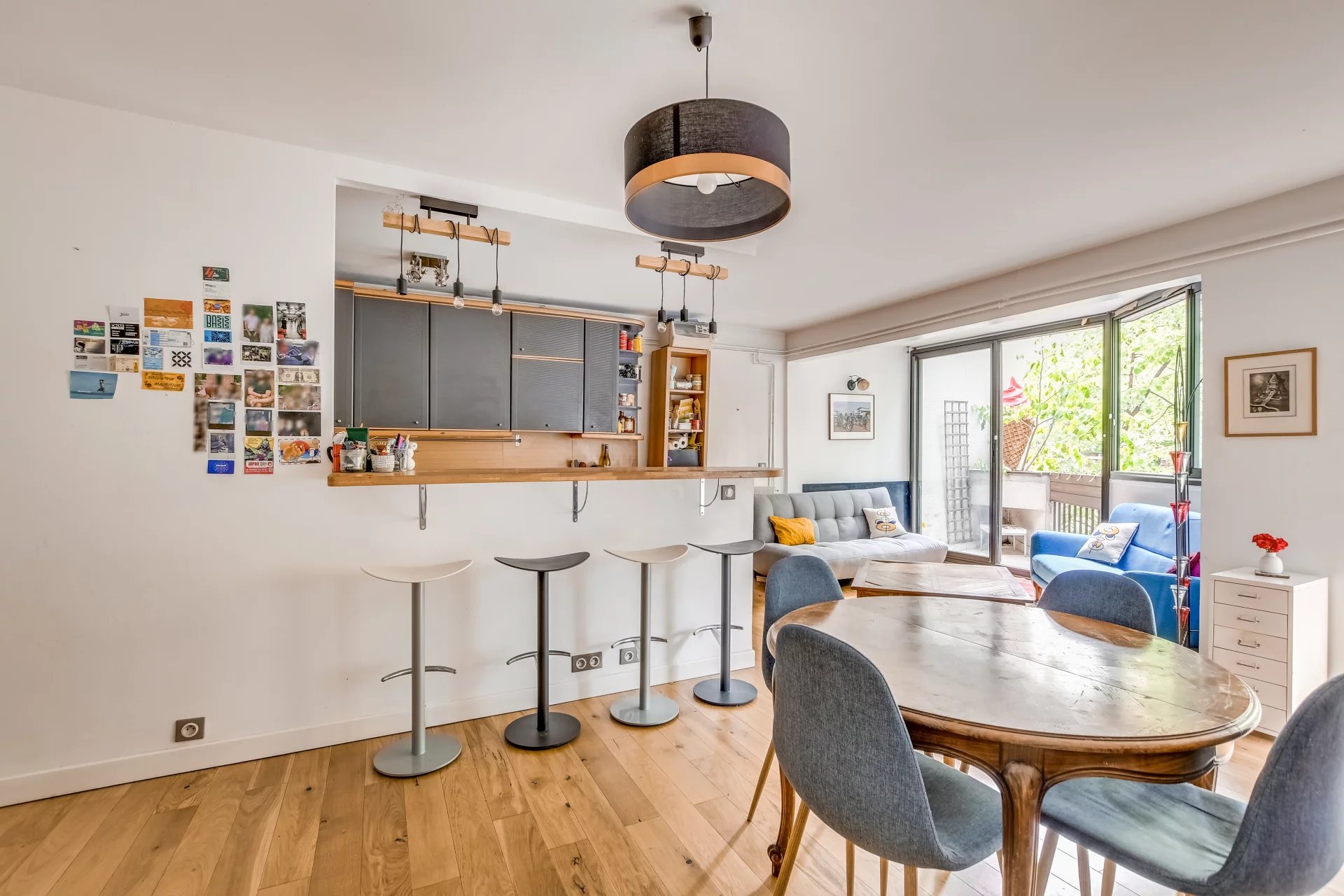 Dès l’entrée, vous serez accueilli par un espace fonctionnel avec placard et buanderie. Le bien s’ouvre ensuite sur un superbe séjour de 34 m², baigné de lumière, avec cuisine américaine équipée et accès à un balcon.